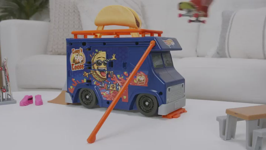 Hot Wheels Skate Taco Arabası Oyun Seti, kaymak, taşlamak ve sürmek için özel tasarlanmış akrobatik parkurlarla dolu taşınabilir bir oyun setidir. Hot Wheels dünyasının enerjisini ve kaykay kültürünün özgürlüğünü birleştirir. Çocuklar dev taco rampasında yeni numaralar deneyebilir, arka rampada hızlanabilir ve piknik masasının üzerinde 360 derece dönüşlerle ustalıklarını sergileyebilirler.